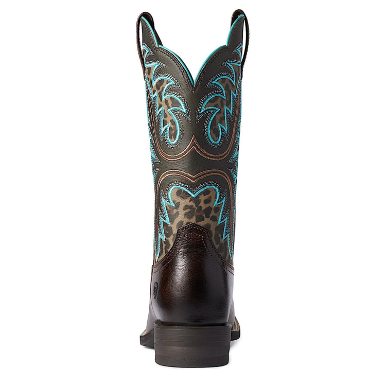The Womens Ariat Lonestar Chocolate Chip / Leopard Print Boot is a boot of substance and style. Featuring shock reduction technology in the heel and rebound foam in the footbed for comfort you will feel when you jump off your horse or have been on your feet all day. A high-tech boot that'll turn heads. Lonestar pairs eye-catching prints with intricate embroidery for a rich, textured look.