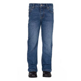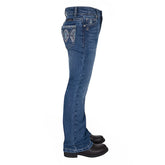The Pure Western Girl's Pam Boot Cut Jeans combine style and comfort with a mid-rise fit and stretch fabric for ease of movement. Featuring an adjustable elastic waistband for a perfect fit at any size, they showcase detailed Pure Western embroidery on the front and back pockets, complemented by diamanté rivets and a logo shank button. The contrast topstitching and woven logo label on the back yoke add refined touches, making these jeans both functional and fashion-forward.