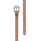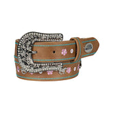 The Pure Western Kid's Isabella Belt features exquisite floral embroidery and horse conchos adorned with sparkling diamantés, combining style with Western tradition. Its removable buckle and silver hardware offer versatility and durability, making it a perfect accessory for young riders seeking both function and flair.