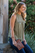 Sleeveless blouse with high neck, lace detail at front yoke, self covered button closure at back, Pure Western logo embroidery on front hem, Pure Western logo pip on side seam, soft hand feel and drape