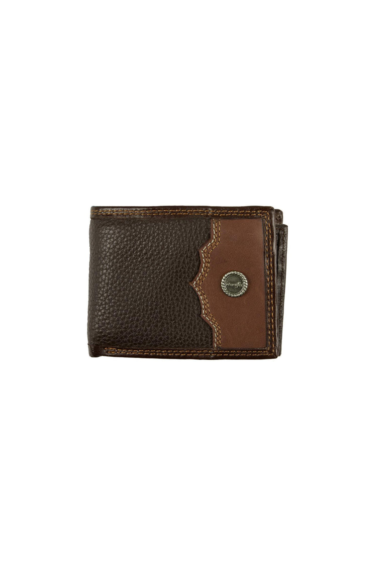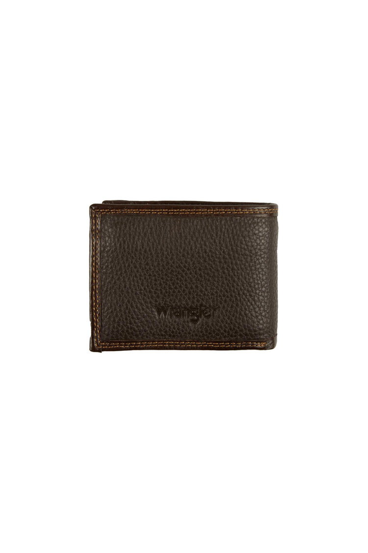Bifold closure, contrast tab with stitch detail, 6 x card slots and 1 x ID slot, 2 x note pockets, coin pocket with snap closure, 1 x zip pocket, Wrangler® iconic logo concho, RFID PROTECT technology protects your credit cards from fraud and identity theft