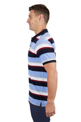 Concealed chest pocket, multi colour stripe design, rib collar and cuffs, premium quality canvas taping on front placket, contrast herringbone taping on inner neck and side seam splits, contrast button thread colour to match stripes, horseman embroidery on chest