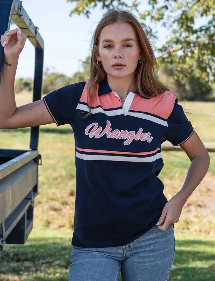 Classic short sleeve polo shape with Wrangler® iconic logo detailing and ribbed collar and cuffs.