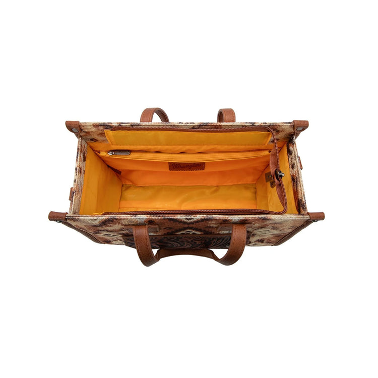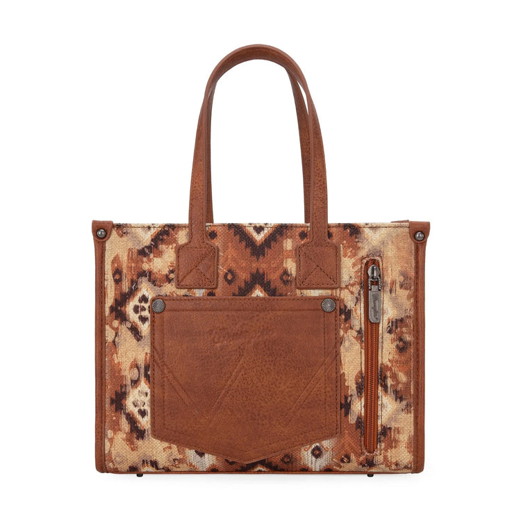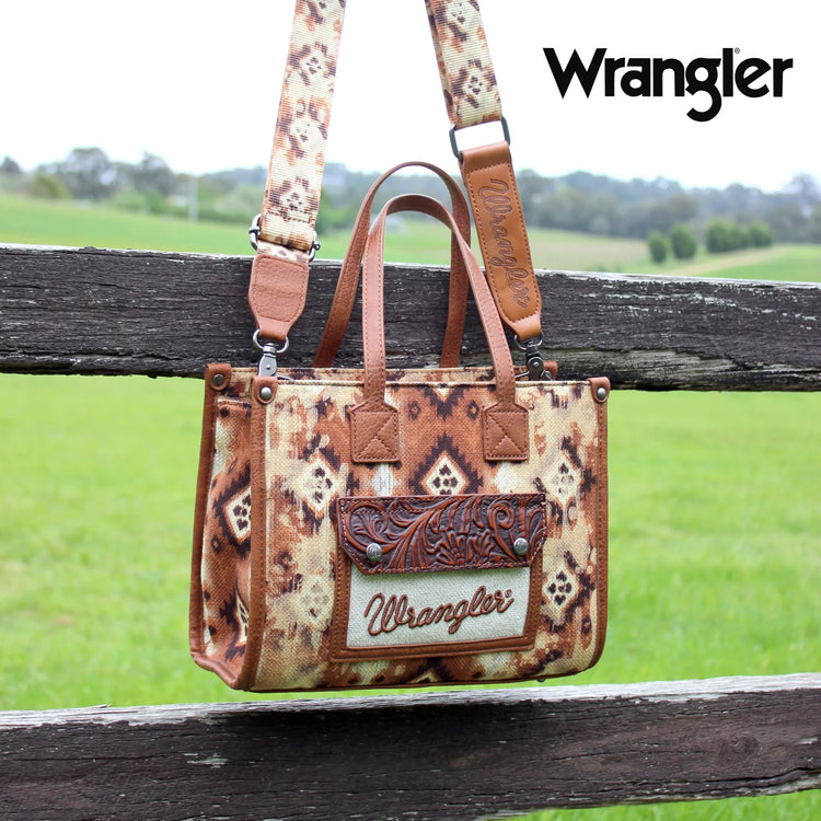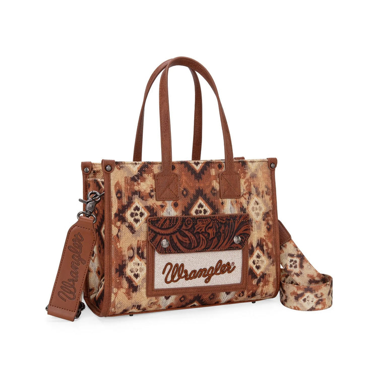 Aztec Pattern Print On Canvas, Front Pocket With Tooling And Logo Embroidery, Top Zip Closure, Detachable And Adjustable Printed Crossbody Strap, Contrast Handles, Internal Zip Pocket And Slip Pockets