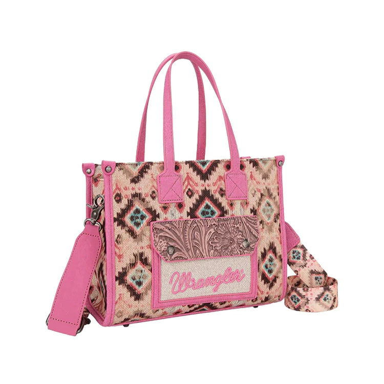 Aztec Pattern Print On Canvas, Front Pocket With Tooling And Logo Embroidery, Top Zip Closure, Detachable And Adjustable Printed Crossbody Strap, Contrast Handles, Internal Zip Pocket And Slip Pockets