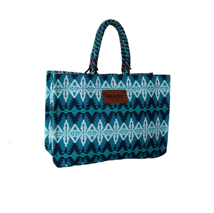 Elevate your style with the Wrangler Blue Southwestern Oversized Tote, designed for the modern woman who values both fashion and function. Crafted from durable canvas, this spacious tote features a striking Southwestern print complemented by whipstitch detailing and a prominent Wrangler logo patch. The zip top closure ensures your belongings stay secure, while the interior pockets provide easy organisation for all your essentials. Perfect for shopping trips or everyday outings, this tote combines practicality with a bold aesthetic. Discover your new favourite accessory today!